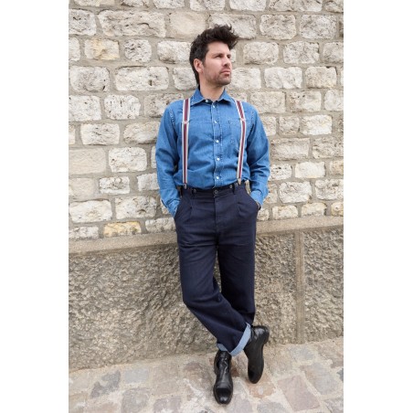Red white blue wide suspenders Les Neveroises