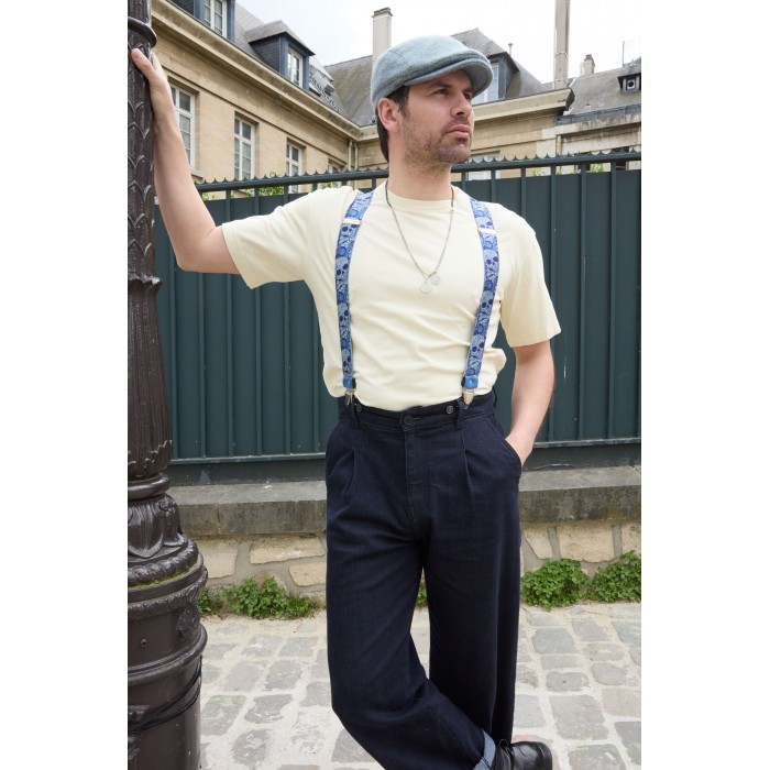 Vous pouvez par exemple porter une chemise blanche et un smoking gris foncé. Enfilez ensuite vos chaussures en daim marron, puis mettez vos bretelles larges bleu Les Piscénoises. Vous serez d’autant plus séduisant avec les lignes que vous dessinera cet accessoire.